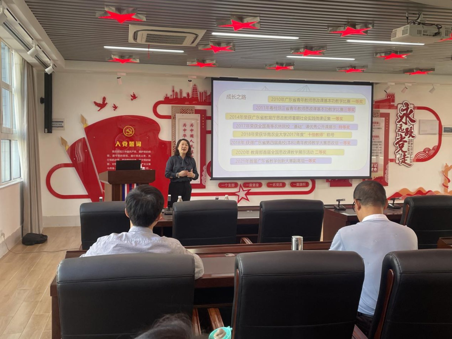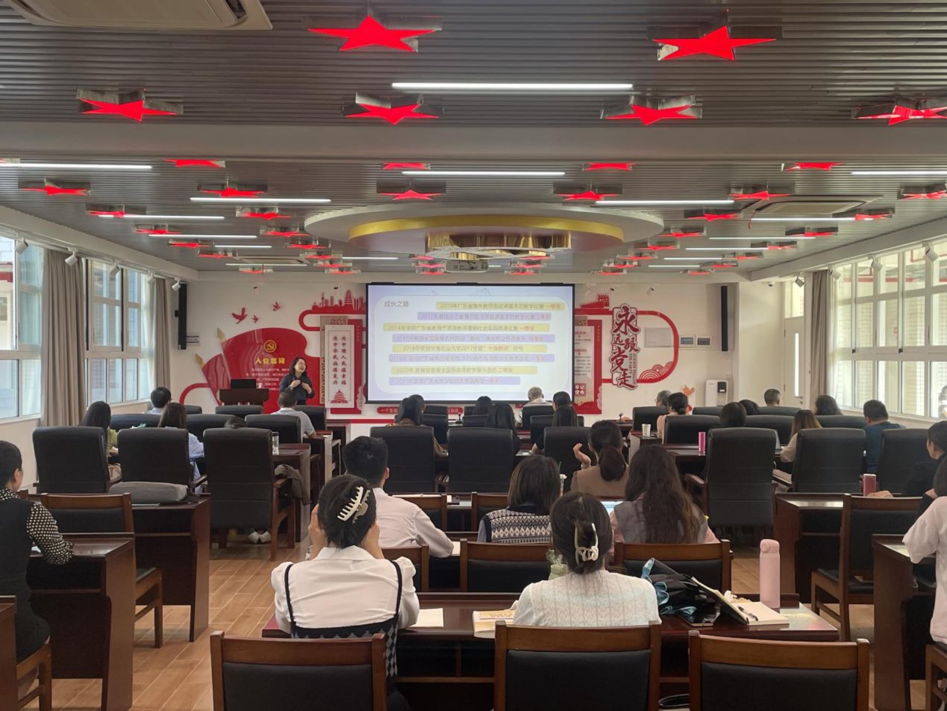 本网讯(马克思主义学院张运华)为了进一步提升马克思主义学院教师教学能力,激发青年教师参加教学竞赛的积极性,2022年10月12日下午,马克思主义学院特别邀请了华南农业大学马克思主义学院卜艳华副教授,在党建文化中心开展以《以赛促教--提升教学能力》为主题的讲座。马克思主义学院全体教师参加。