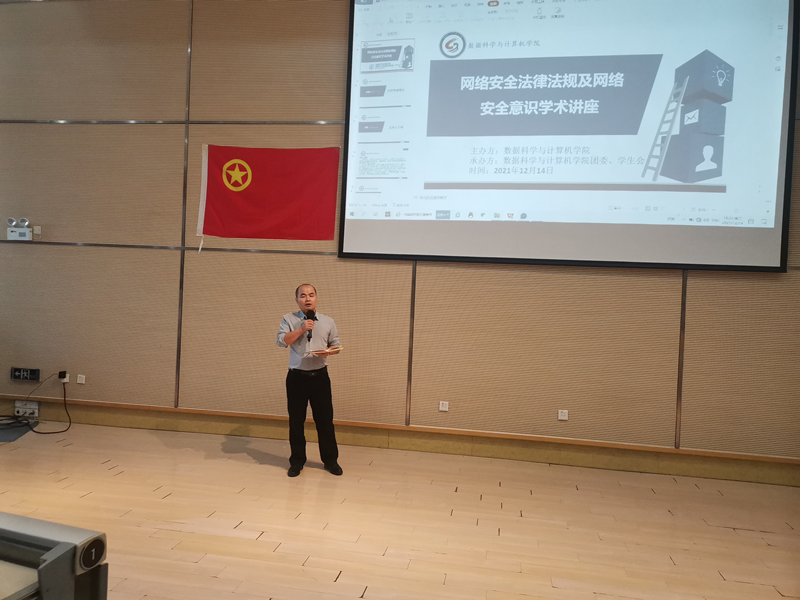 本网讯(数科院 宋仕灵)为增强师生的网络安全意识,提高网络安全防范能力,推进我校网络安全与信息化建设。2021年12月14日下午,数据科学与计算机学院教学副院长何小平老师在校学术报告厅开展了“网络安全法律法规及网络安全意识”主题讲座。此次讲座由数科院团委学生主持,数科院全体老师和部分学生合共260人聆听了此次讲座。